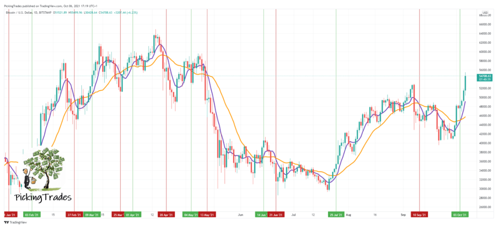 These crossovers are difficult to trade alone as price is often more volatile than the average and therefore these events can be prone to false signals. To increase probabilities further additional confirmations can be added, such as price moving back above the MAs or buying / selling them as support resistance structures with bias set by the direction of crossover.